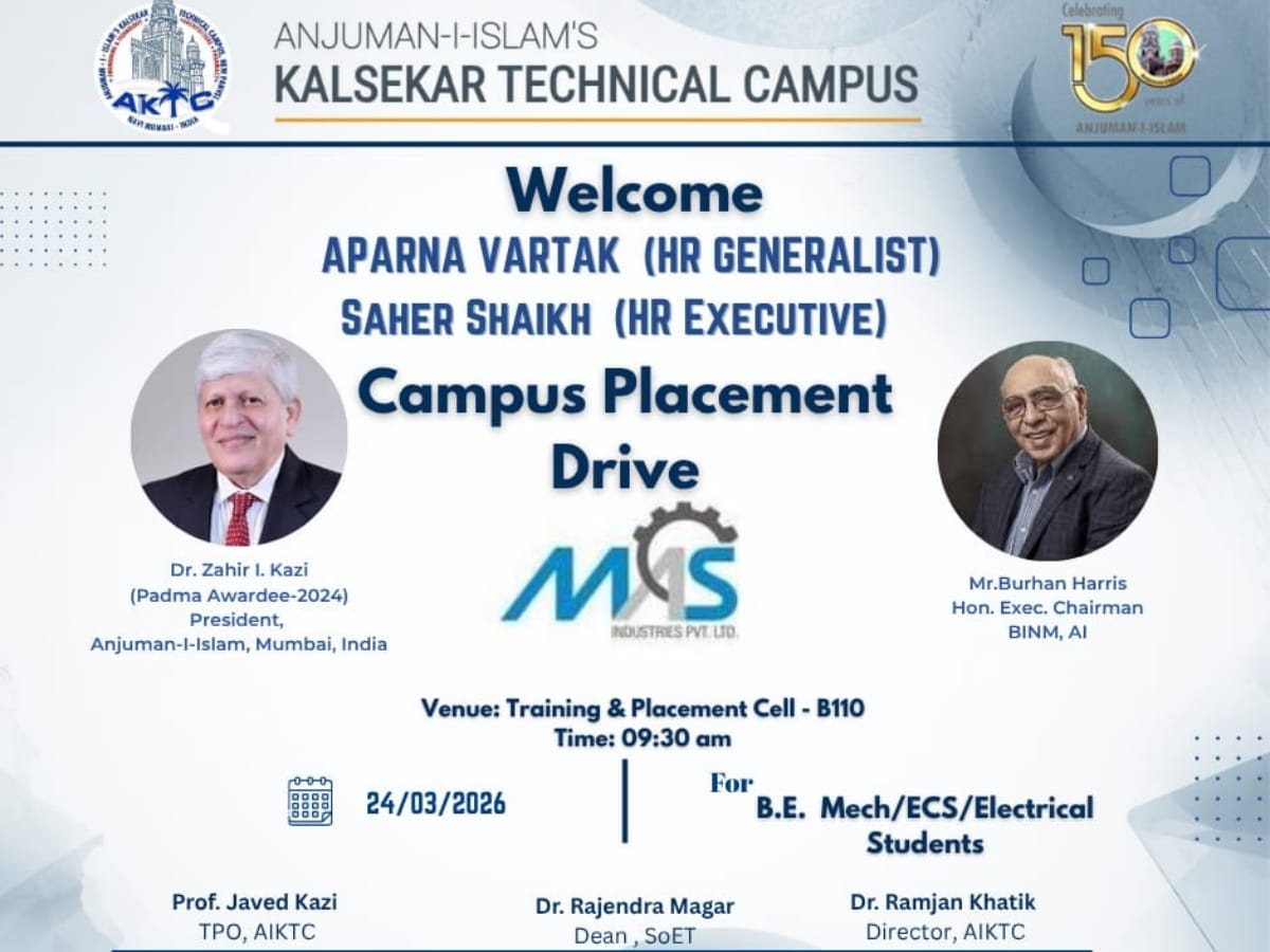 It is an outstanding technological campus where students are trained & taught by qualified teachers and trainers to attain their full potential. AIKTC provides Best of Facilities for quality education, research and practice in all the professional Programmes in Engineering & Technology, Pharmacy and Architecture, ranging from Diploma to Degree to Post Graduate courses.