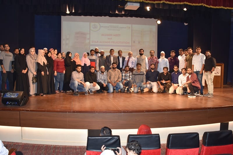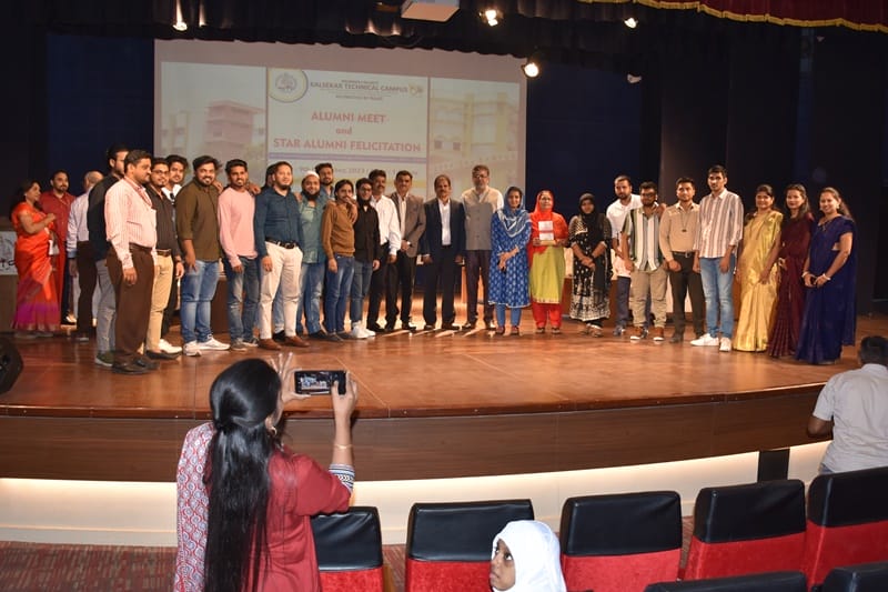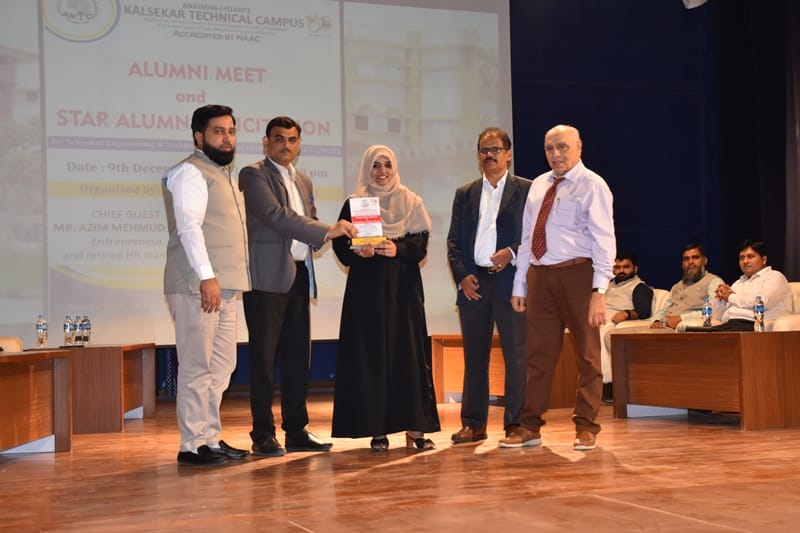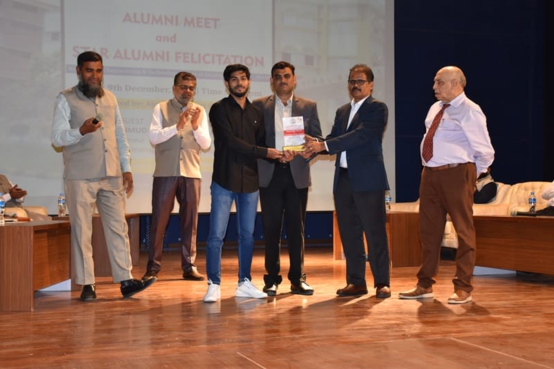 The event started with the registration on the desk outside Auditorium where the alumni were given food coupons and gift coupons. The alumni then proceeded to the canteen to have lunch and informally meet and greet their peers and faculties. The formal event started in the auditorium at 2:30 PM. After a brief introduction by Dr. Rohan Dasgupta (Controller, Alumni Connect Centre) and recitation of the Holy Qur’an by Mr. Mohammed Ambar Qadri (General Secretary, Students’ Council), the welcome address was delivered by Dr. Rajendra Magar (Dean, School of Engineering and Technology). Then Dr. Ramjan Khatik (Director) delivered his speech which was followed by words of motivation by Mr. Burhan Harris (Hon. Exec. Chairman, BINM, Anjuman-I-Islam). Based on self-nomination and further scrutiny by each department, 4 alumni from each department were felicitated with “Star Alumni” trophies for the excellence they achieved in their corporate or entrepreneurial career and contribution to the alma mater. The formal event ended with selected alumni feedback on stage, vote of thanks by Dr. Dasgupta followed by the national anthem and department wise group photos. The alumni then proceeded to their respective departments where each department had some events lined up for them like cake cutting, interaction with current students etc. The event ended with the alumni giving their feedback online via QR code and collecting their gift bags containing a wall clock and calendar.
