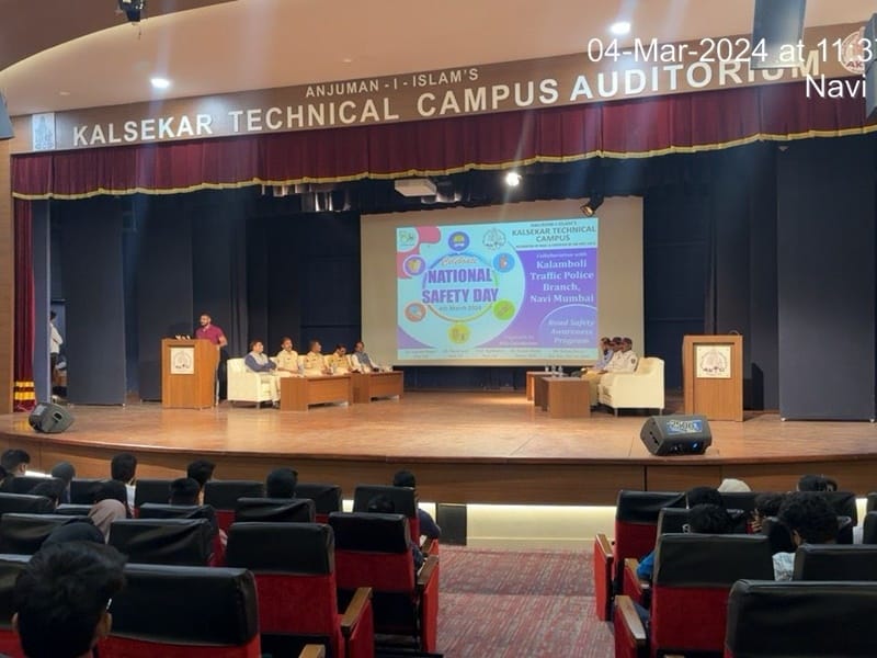 The primary objective of the "Awareness of National Safety Day" event, held at Anjuman I Islam Kalsekar Technical Campus, New Panvel, on 4th March 2024, was to educate and raise awareness among first-year engineering students, including various branches (Computer Engineering, Computer Science Engineering - Data Science, Computer Science Engineering - AIML, Electronics and Computer Science, Civil, Mechanical), as well as first-year pharmacy and architecture students. Organized under NSS activities, the program aimed to highlight the importance of safety, encompassing road safety, cybercrime prevention, and overall well-being.