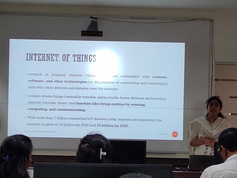 Electronics and computer science department of AIKTC, panvel organized an expert lecture on IEEE initiatives and internet of things applications on 26th June 2023. The lecture was delivered by Dr. Manasi Subhedhar , head of Electronics and computer science department HOC, Pillai Rasayani. Dr. Ramzan Khatik Director, AIKTC addressed faculties regarding objectives of expert session. The resource person took over the first session of IEEE initiatives at 11:15 AM in this session she made faculties aware about students’ chapter formation, organizing IEEE conferences and different advantages of faculty IEEE membership to faculties. The second session on IOT applications started at 12:30Pm. The lecture gave a deep insight in the development of IOT based projects and evoked a great interest amongst faculties and was summed up with a live question-answer session. Nearly 35 faculties participated from ECS, CO and EE departments. Many heads and faculty members from various departments were also present. Participants showed keen interest in learning the concepts ,methodologies and gave satisfactory feedback at the end of session.