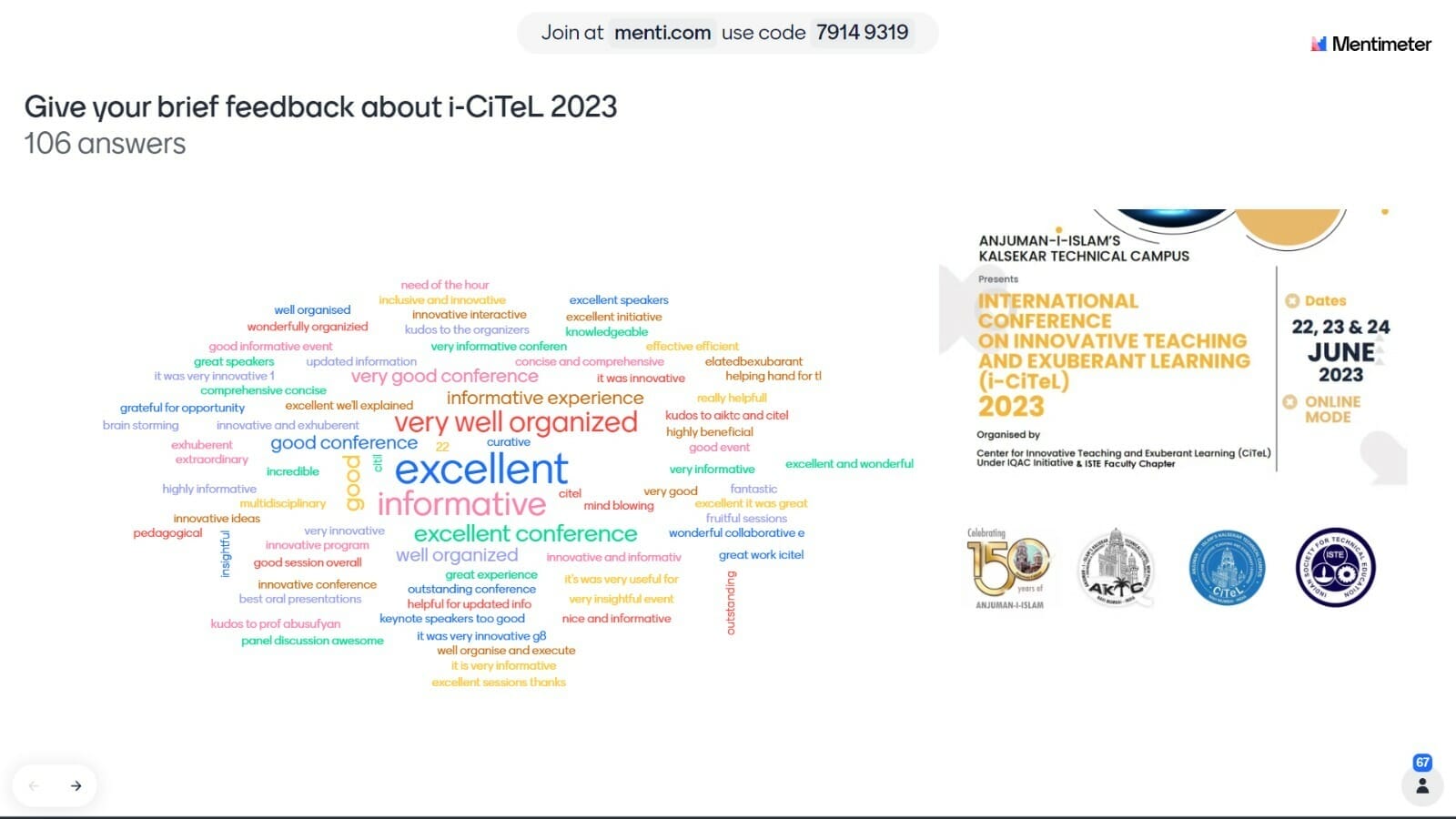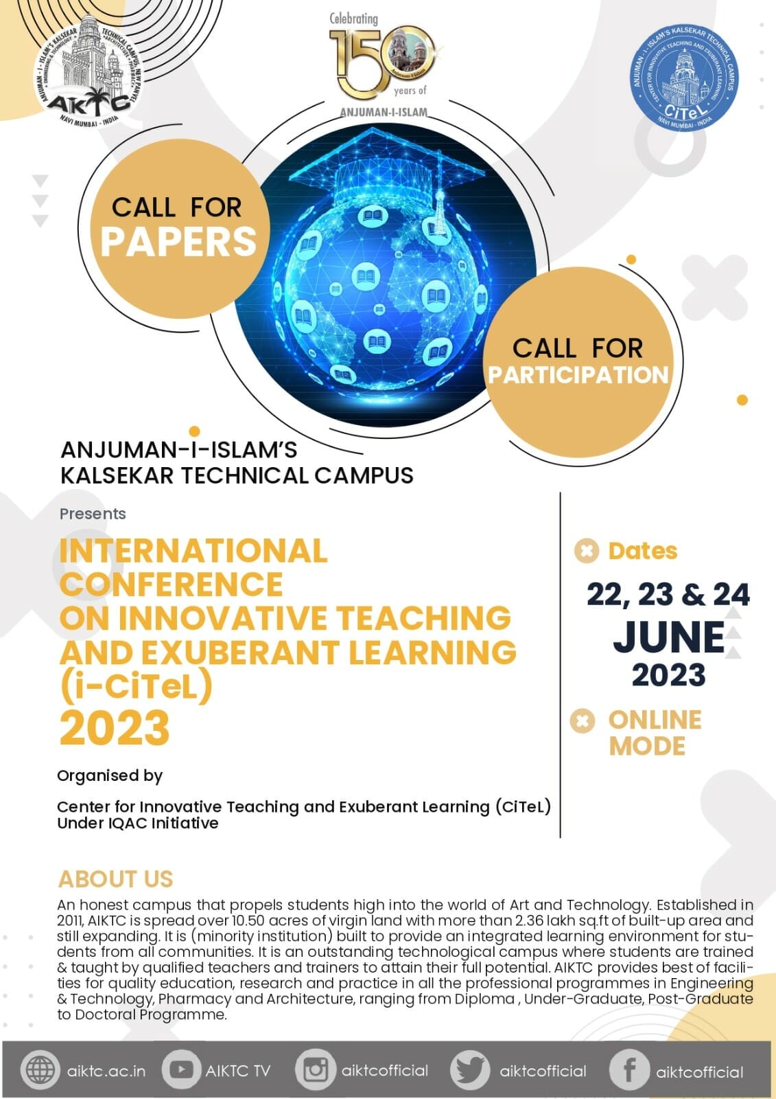 Three Days International Conference on "Innovative Teaching & Exuberant Learning (iCiTeL)” was organised by CiTeL under IQAC Initiative and ISTE Faculty chapter from 22nd-24th June 2023 onwards.