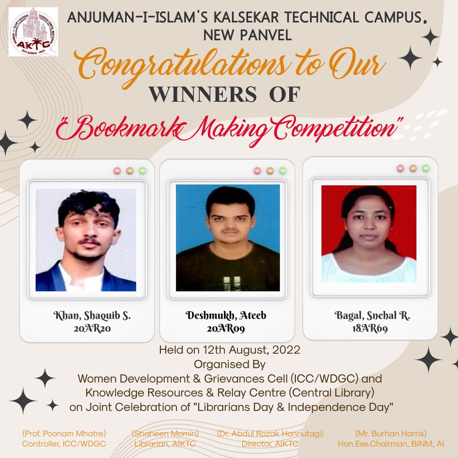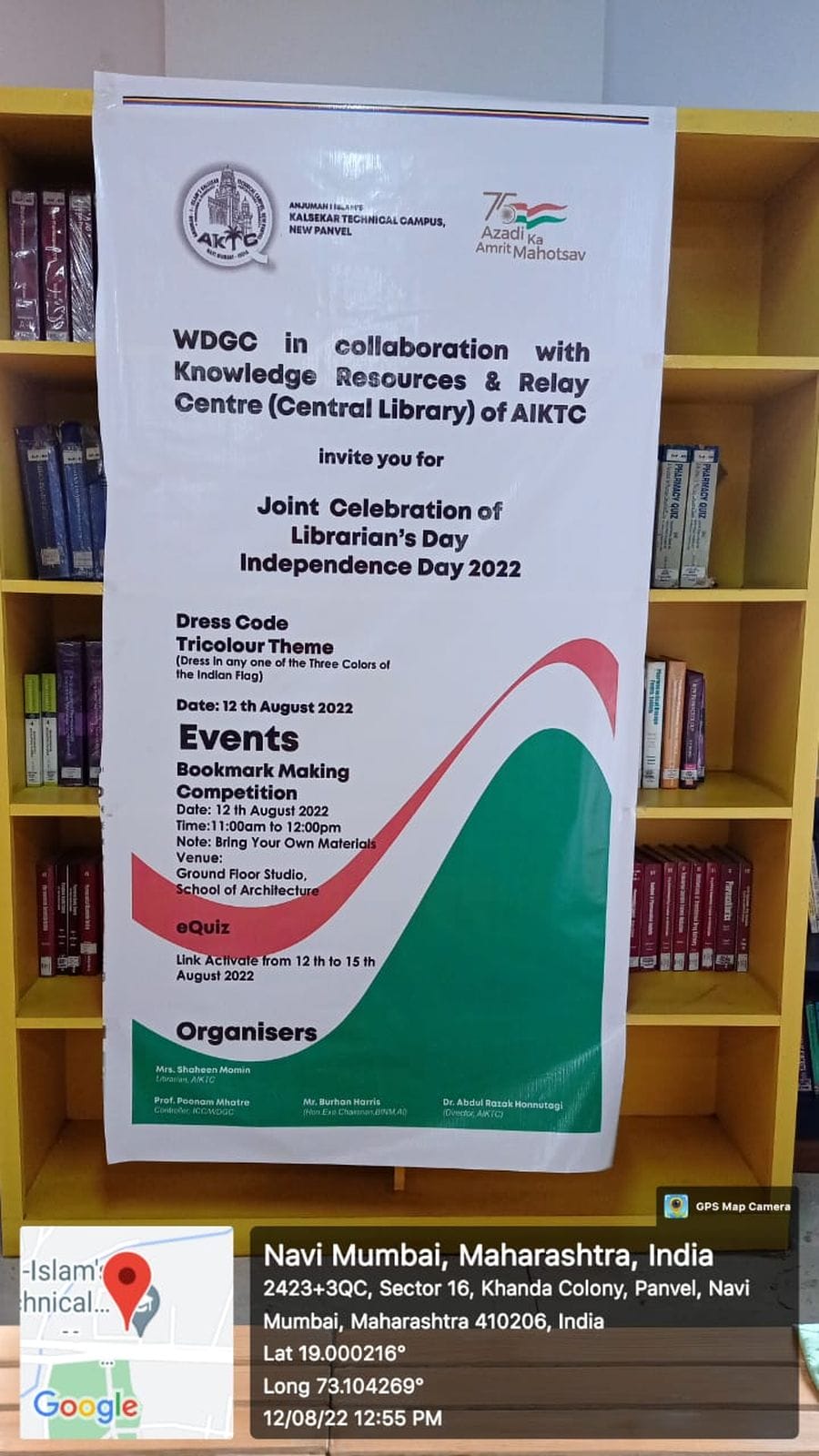 On the occasion of Librarians’ Day and Independence Day being celebrated nationally on 12th & 15th August 2022 respectively, Women Development & Grievance Cell (WDGC) in collaboration of Central Library organized series of activities from 12th to 15th August 2022.