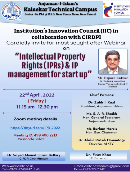 president L & T Mumbai. He talked about various types of Intellectual Property Rights. He discussed