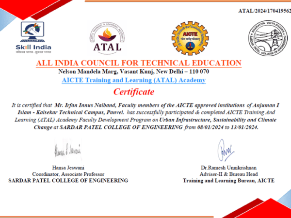 Affiliated by ATAL, AICTE, SKILL INDIA, Govt. of India. Organized at Sardar Patel college of engineering, Andheri (SPCE) & IITB, Powai.