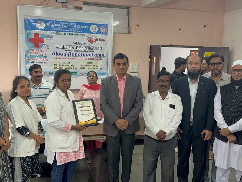 AIKTC School of Pharmacy started the “AIKTC-Youth Red Cross Maharashtra” chapter that focuses on youth development. The Youth Red Cross in Maharashtra is likely a branch or unit of the Indian Red Cross Society, specifically focused on youth involvement and participation in humanitarian activities. The Indian Red Cross Society is a prominent humanitarian organization in India, and its Youth Red Cross wing engages young people in various social service and health-related initiatives.